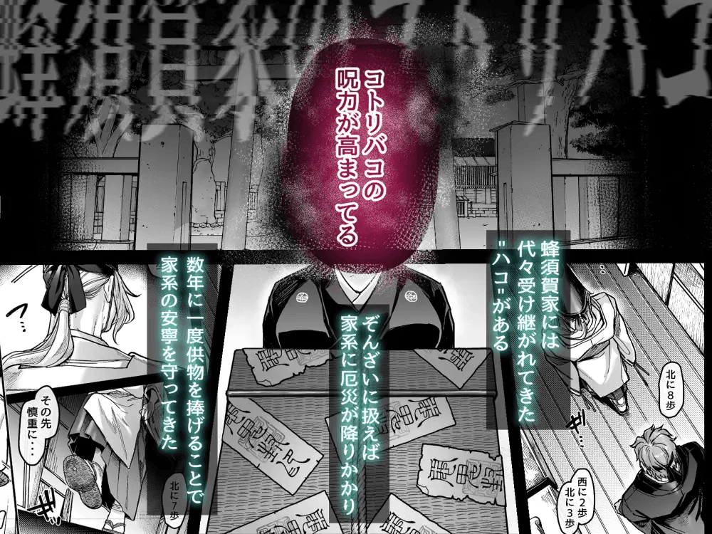 蜂須賀家には代々伝わる呪物「コトリバコ」があり、その呪いを鎮めるために独自の儀式が執り行われてきた。そして今回、厄災を防ぐ手段として「授乳」の儀式が必要とされ、佐羽はそのための「調教」を綜次郎から受けることに。