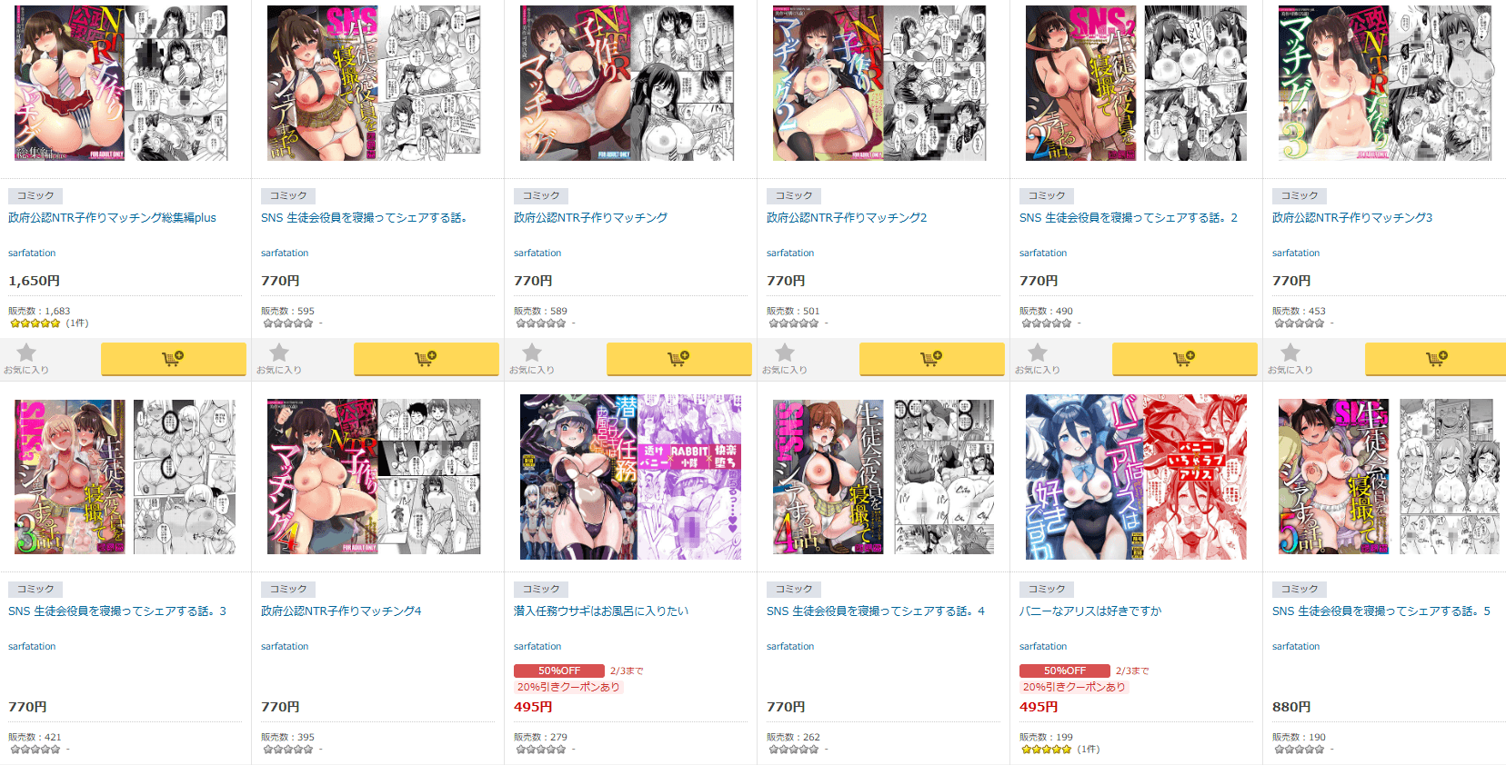 サークル名「sarfatation 」さんの他作品です。