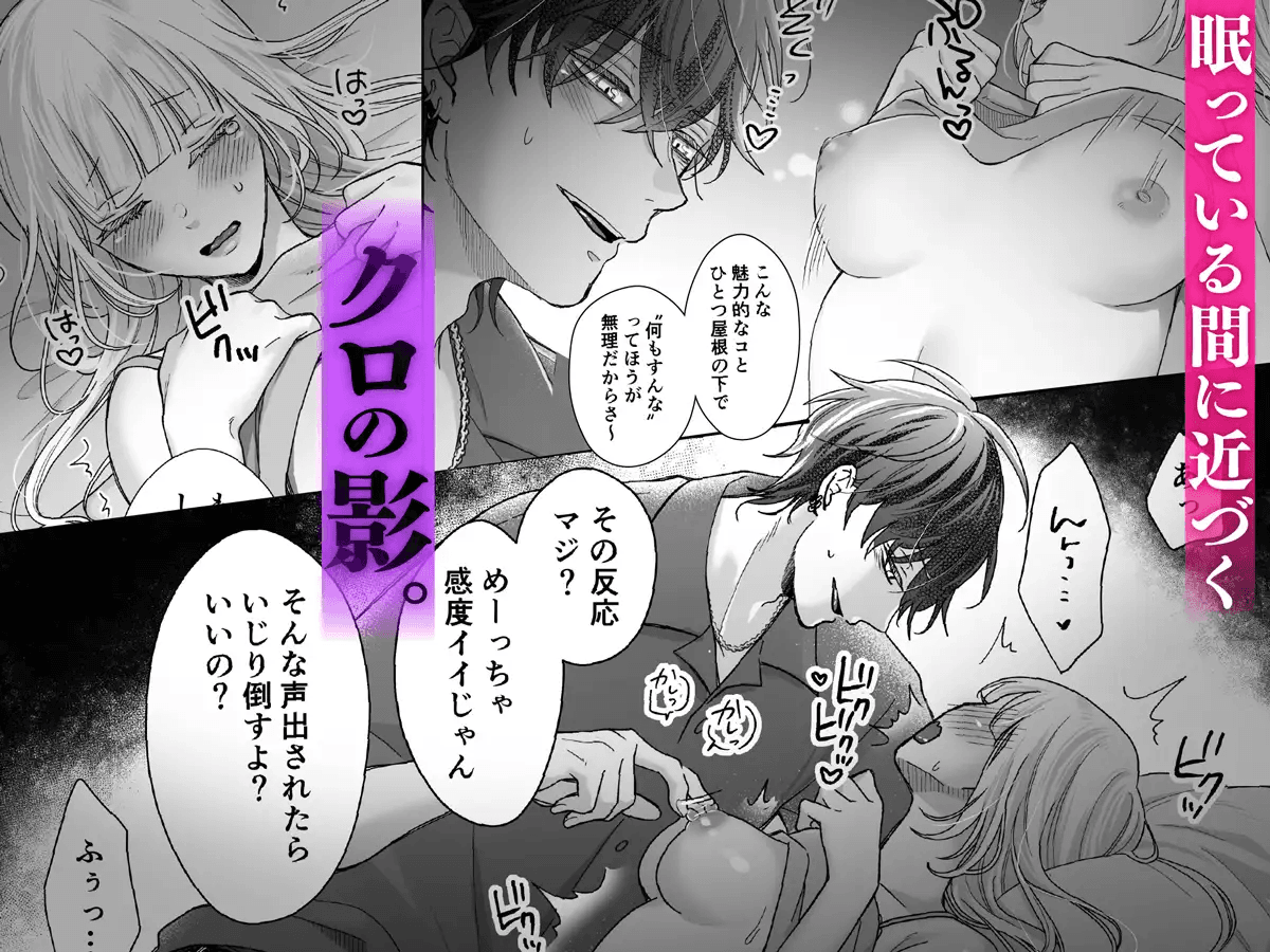 すやすや寝ているのに容赦なく敏感なところを愛撫してくるクロくんやばい!w 乳首カリカリしたり、つまんでシコシコされて、寝てるのにビクンビクン♥て感じちゃう真白ちゃんがエッチ過ぎて見入っちゃいました~♡♡